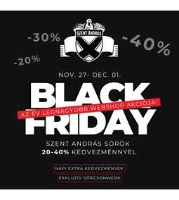 Ez a Black Friday különlegesebb, mint valaha! November 27. és december 01. között ugyanis két exkluzív sörcsomagot is beszerezhetsz, amiket csak a Szent András Webshopban találsz meg! Az egyik csomag az "extrémebb", a másik pedig a "klasszik" sörös vonalat képviseli, így mindenki megtalálja a hozzá legjobban passzoló ízeket. A Black Friday alatt öt különböző kedvezményes sörcsomagra csaphatsz le, de nem árt sietned, az akciók minden esetben csak a készlet erejéig élnek!