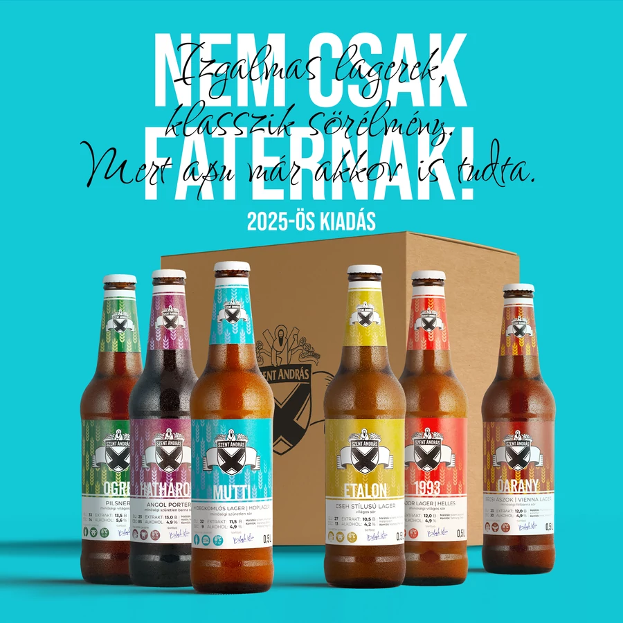 Izgalmas lagerek, klasszik sörélmény. Mert apu már akkor is tudta. Magyarország egyik legnagyobb múltú kisüzemi sörfőzdéje, a Szent András Sörfőzde "Nem csak faternak!" sörválogatása hatféle különböző sört tartalmaz, így minden ínyenc és hagyománykövető sörkedvelő is megtalálja benne a számára legideálisabb típust.